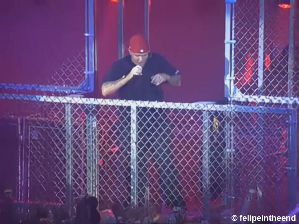 – One fan made it over the fence during ‘Faith’ (George Michael cover), tried to grab Fred, but has been tacked and dragged offstage by security. Fred commented “What do you want to do, date me? Stay off this fuckin’ stage, man. You’re fucking up the whole show”. When fans made it to the top of the gate, Fred urged them to jump by shouting “Jump! Jump! Do it!”.